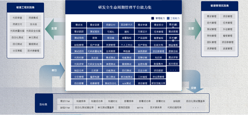 可视化管理、、、、重视数据安全、、、工具固化流程、、、、交付质量提升、、交付效率提升、、、精准执行预算、、多视角全域效能、、、一站式测试平台、、、、打通DevOps自动化工具链